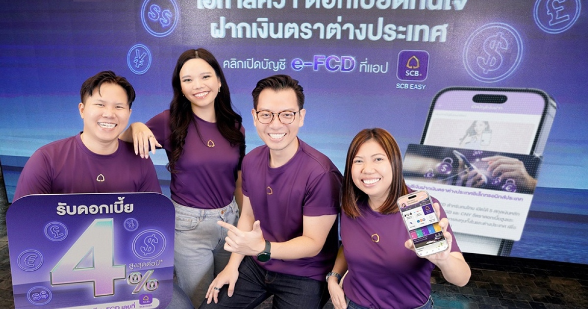 SCB ตอกย้ำผู้นำดิจิทัลแบงก์กิ้ง เปิดตัว “บัญชีเงินฝากเงินตราต่างประเทศอิเล็กทรอนิกส์ (e-FCD)” รับดอกเบี้ยดีทันใจสูงสุด 4% ต่อปี* เปิดบัญชีได้ง่ายๆ บนแอป SCB EASY - เลือกฝากได้มากถึง 5 สกุลเงินหลัก