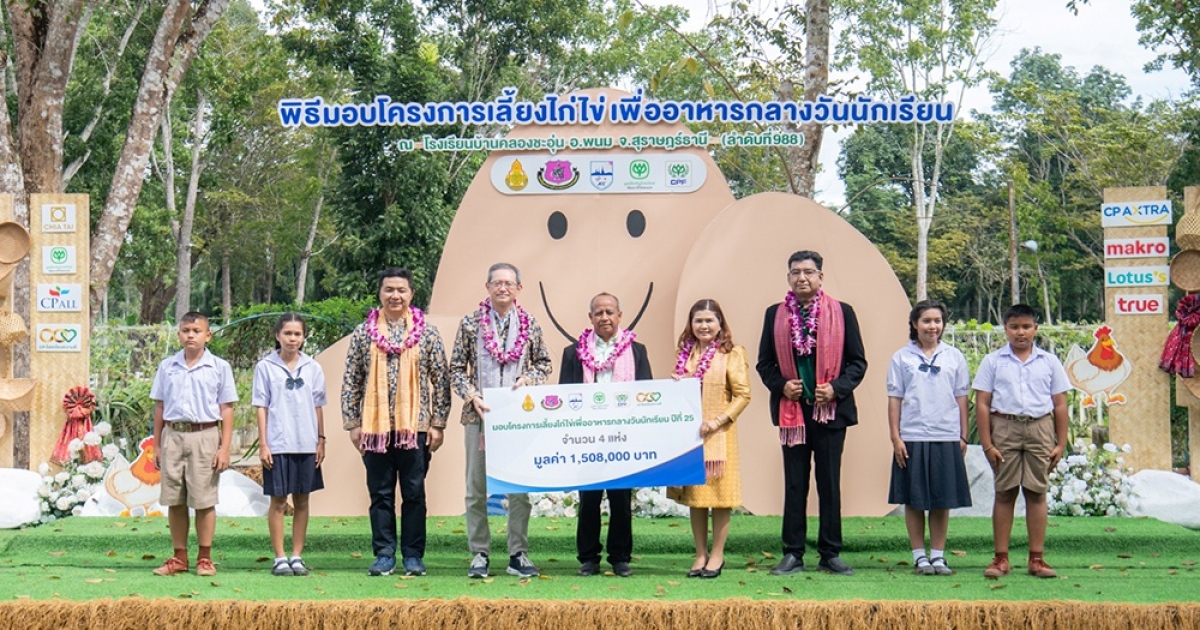 เครือซีพี - ซีพีเอฟ - มูลนิธิเจริญโภคภัณฑ์พัฒนาชีวิตชนบท ร่วม JCC มอบ “โครงการเลี้ยงไก่ไข่เพื่ออาหารกลางวันนักเรียน“ โรงเรียนที่ 988