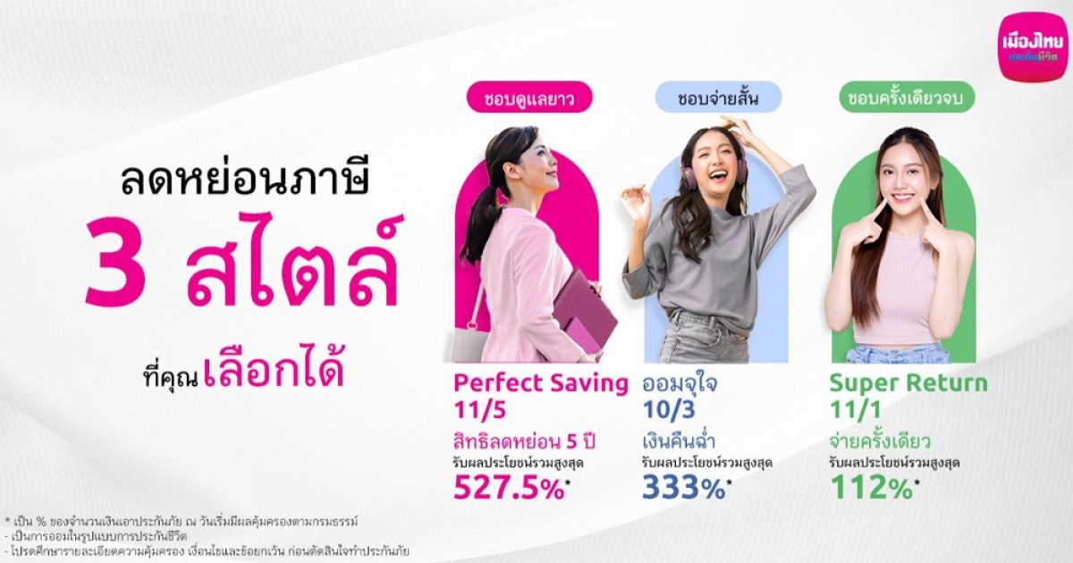 เมืองไทยประกันชีวิต ขนทัพ “ประกันออมทรัพย์ออนไลน์” 3 แบบ 3 สไตล์ในแบบคุณ ช่วยวางแผนภาษีโค้งสุดท้ายปลายปี
