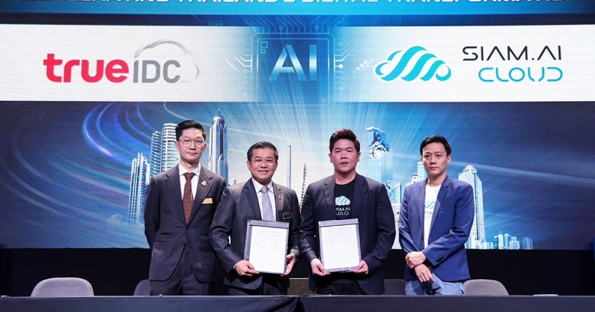 เมื่อวันที่ 4 ธันวาคม 2567 บริษัท ทรู อินเทอร์เน็ต ดาต้า เซ็นเตอร์ (ทรู ไอดีซี) บริษัทในเครือเจริญโภคภัณฑ์ หรือ ซีพี ซึ่งเป็นผู้นำด้านบริการดาต้าเซ็นเตอร์และระบบคลาวด์ ร่วมกับ บริษัท สยามเอไอ คอร์ปอเรชั่น (สยามเอไอคลาวด์) ผู้ให้บริการคลาวด์คอมพิวติ้งที่มีประสิทธิภาพสูงและ NVIDIA Cloud Partner รายแรกในไทย ตลอดจนผู้พัฒนานวัตกรรมด้านเอไอด้วยเทคโนโลยีขั้นสูง ประกาศความร่วมมือผ่านการลงนามบันทึกข้อตกลง (MOU) เพื่อพัฒนาระบบนิเวศ AI ของประเทศไทย ครอบคลุมโครงสร้างพื้นฐานดิจิทัล การสร้างโมเดล AI และบริการ AI ออนไลน์ โดยมีเป้าหมายสำคัญในการยกระดับศักยภาพ AI ของประเทศสู่ระดับสากล เป็น TH-AI-LAND โดยงานนี้ได้รับเกียรติจาก นายธนินท์ เจียรวนนท์ ประธานอาวุโส เครือเจริญโภคภัณฑ์ นายสุภกิต เจียรวนนท์ ประธานกรรมการ เครือเจริญโภคภัณฑ์ และ นายศุภชัย เจียรวนนท์ ประธานคณะผู้บริหาร เครือเจริญโภคภัณฑ์ รวมถึงนาย Jensen Huang ผู้ก่อตั้งและซีอีโอของ NVIDIA เข้าร่วมงาน ทั้งนี้มี นายฐนสรณ์ ใจดี ประธานคณะผู้บริหาร ทรู ไอดีซี และ นายรัตนพล วงศ์นภาจันทร์ ประธานเจ้าหน้าที่บริหาร สยามเอไอคลาวด์ เป็นผู้แทนในการลงนามครั้งสำคัญนี้เพื่อร่วมกันขับเคลื่อนความก้าวหน้าทางเทคโนโลยี AI และเพิ่มศักยภาพของประเทศไทยบนเวทีโลก