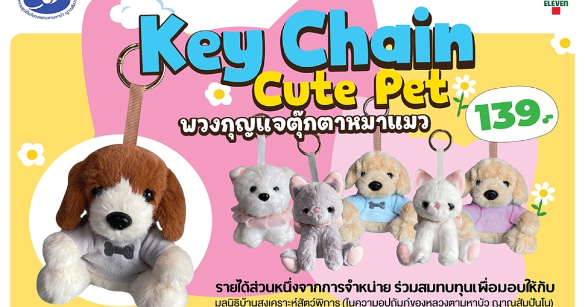 เซเว่น อีเลฟเว่น ยกBox กล่องจุ่ม พวงกุญแจน้องหมา น้องแมว ขนนุ่ม น่ารัก มาให้เลือกเป็นจ้าของแล้ววันนี้ เพียงชิ้นละ 139 บาท 1 Box มี 6 กล่อง รายได้ส่วนหนึ่งจากการจำหน่ายจะนำไปมอบให้กับ "มูลนิธิบ้านสงเคราะห์สัตว์พิการ (ในความอุปถัมภ์ของหลวงตามหาบัว ญาณสัมปันโน) พื่อนำไปช่วยเหลือน้องๆต่อไป