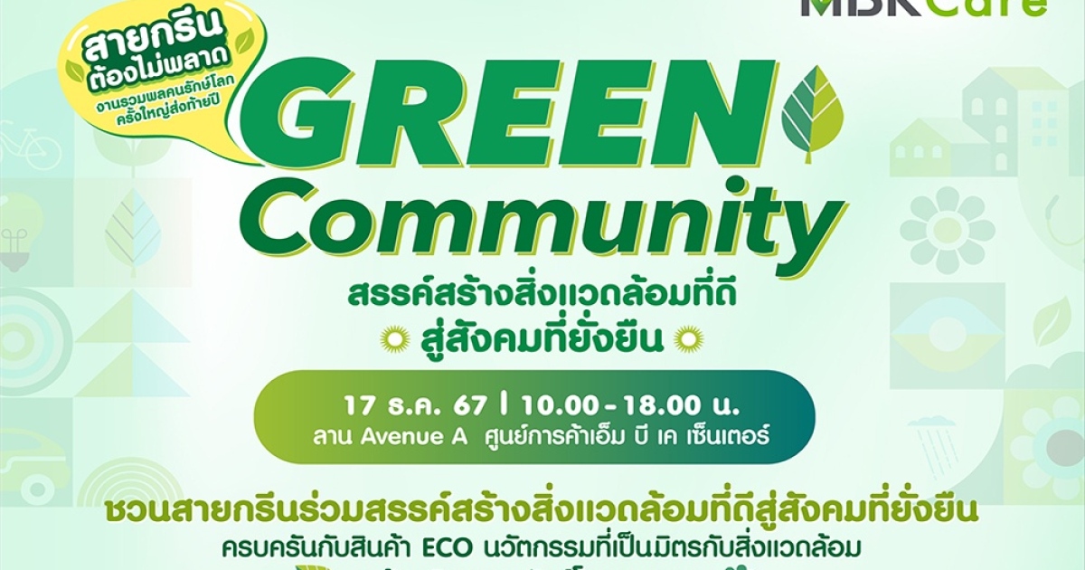 17 ธันวานี้ ชวนสายรักษ์โลก ตะลุยช้อป ชิม กิน เที่ยวตลาดสีเขียว งาน “Green Community สรรค์สร้างสิ่งแวดล้อมที่ดีสู่สังคมที่ยั่งยืน” @ เอ็ม บี เค เซ็นเตอร์