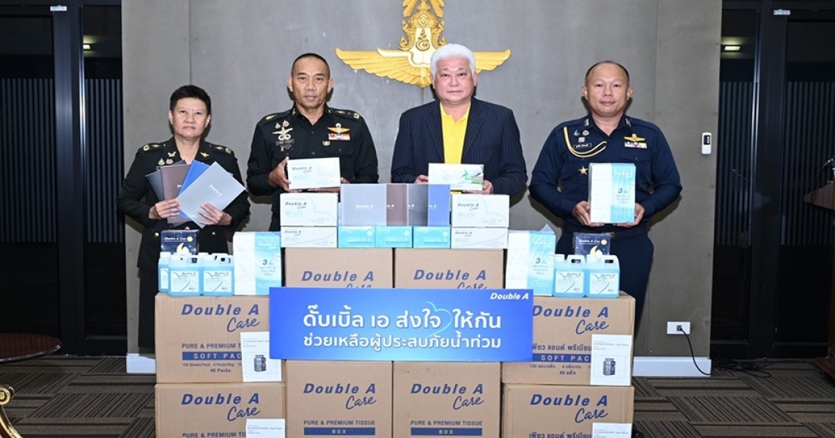นายชาญวิทย์ จารุสมบัติ รองกรรมการผู้จัดการใหญ่ ดั๊บเบิ้ล เอ ร่วมมอบสมุด และผลิตภัณฑ์เพื่อสุขอนามัย Double A Care อาทิ หน้ากากอนามัยฯ น้ำยาทำความสะอาดพื้นและฆ่าเชื้อโรค ถุงมือยาง สเปรย์แอลกอฮอล์ ทิชชูเพียวแอนด์พรีเมียม เพื่อช่วยเหลือบรรเทาความเดือดร้อนและฟื้นฟูหลังน้ำลดแก่ผู้ประสบภัยน้ำท่วม รวมถึงโรงเรียนและโรงพยาบาลที่ได้รับความเสียหาย พร้อมยังเป็นการแบ่งเบาภาระค่าใช้จ่ายให้กับครอบครัวที่ได้รับผลกระทบอีกด้วย ผ่านกองอำนวยการรักษาความมั่นคงภายในภาค 4 ส่วนหน้า /กองทัพภาคที่ 4 โดยมี พลโท เวชยันต์ แว่นไธสงค์ หน.ปส.ทภ.4 เป็นผู้แทน พลโทไพศาล หนูสังข์ แม่ทัพภาคที่ 4 / ผู้อำนวยการรักษาความมั่นคงภายในภาค 4 ในการรับมอบครั้งนี้ ณ ห้องรับรอง อาคารรับรองผู้โดยสาร ท่าอากาศยานทหาร 2 บน.6 เขตดอนเมือง กรุงเทพฯ