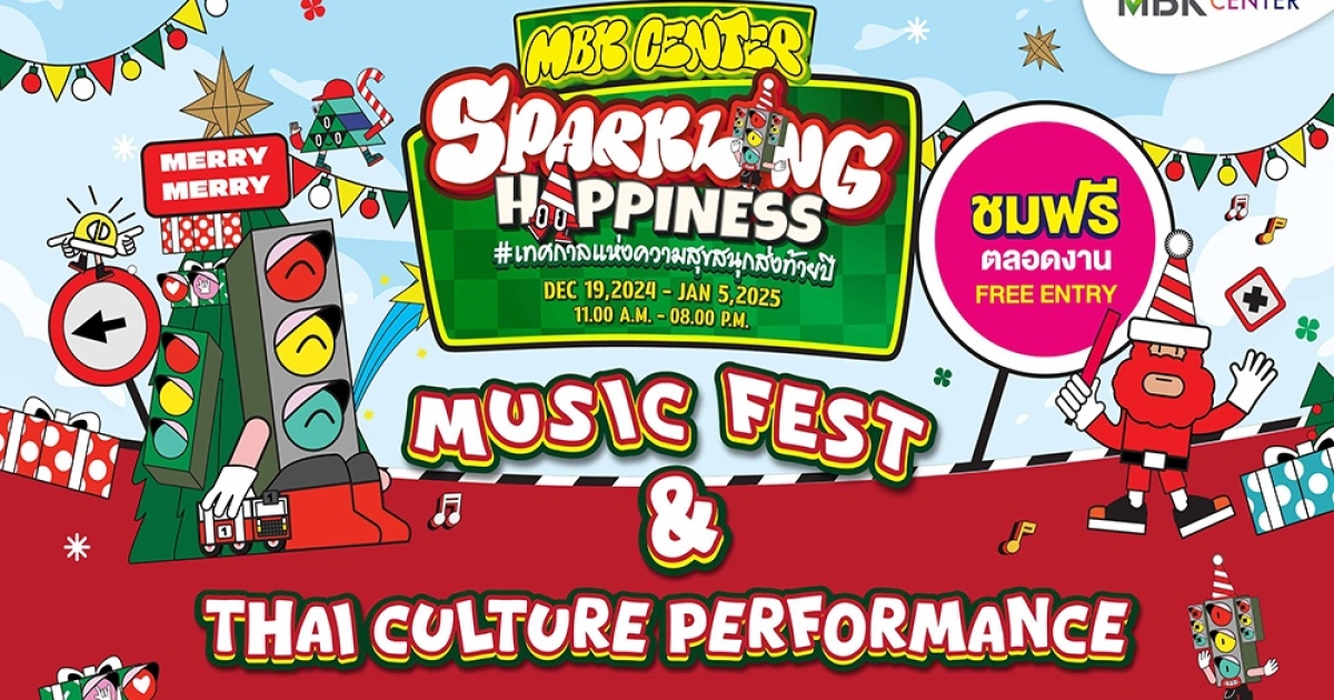 ศูนย์การค้าเอ็ม บี เค เซ็นเตอร์ ผนึกกำลังพันธมิตร จัดเต็มเทศกาลแห่งความสุข มหกรรมดนตรีจากศิลปินสุดป๊อป และความบันเทิงสุดสนุกส่งท้ายปี MBK CENTER SPARKLING HAPPINESS ในงาน Music Fest & Thai Culture Performance ตั้งแต่วันนี้ถึง 5 มกราคม 2568 ดังนี้