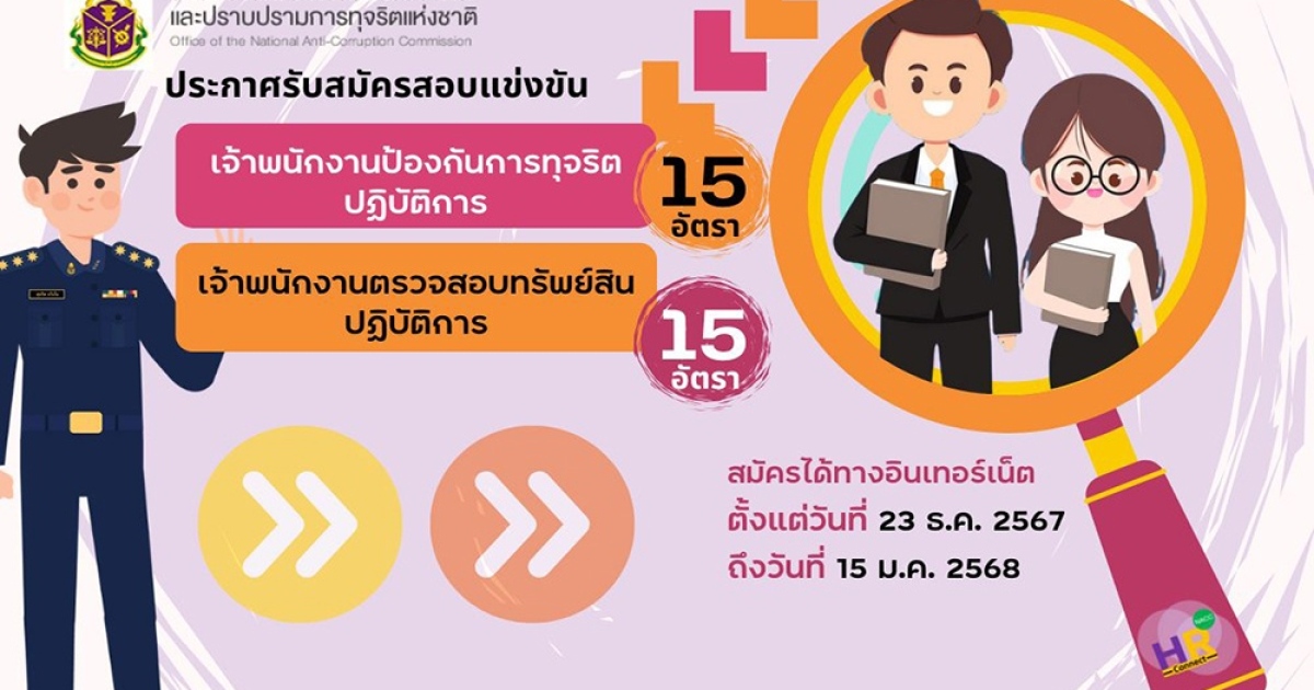 สำนักงาน ป.ป.ช. เปิดรับสมัครสอบแข่งขันเพื่อบรรจุและแต่งตั้งเข้ารับราชการสังกัดสำนักงาน ป.ป.ช. ดังนี้