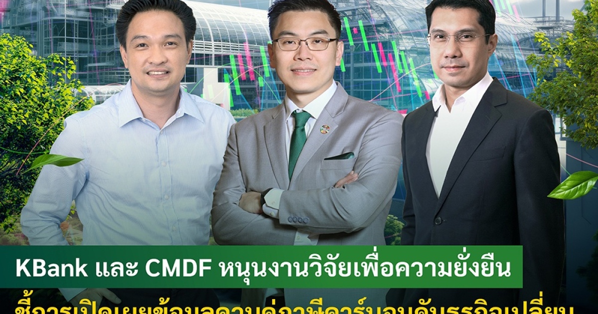 กสิกรไทยและกองทุนส่งเสริมการพัฒนาตลาดทุน (CMDF) สนับสนุนคณะนักวิจัยนำโดย Singapore Management University (SMU) ศึกษาการวางแผนเชิงกลยุทธ์ในการบริหารจัดการความยั่งยืนภายใต้กลไกการกำหนดราคาคาร์บอนในมุมมองของผู้บริหารธุรกิจขนาดใหญ่ในประเทศไทย ชี้มาตรการเปิดเผยข้อมูลผลกระทบสิ่งแวดล้อมของบริษัทเป็นปัจจัยสำคัญที่ทำให้ธุรกิจยอมปรับตัวสู่ธุรกิจคาร์บอนต่ำเพื่อเสริมสร้างภาพลักษณ์องค์กรรักษ์โลก ควบคู่กับการใช้มาตรการภาษีคาร์บอนซึ่งมีผลโดยตรงต่อต้นทุนธุรกิจ นอกจากนี้การสนับสนุนจากภาครัฐ สินเชื่อสีเขียว รวมถึงการสนับสนุนเรื่ององค์ความรู้ ล้วนเป็นปัจจัยส่งเสริมให้ผู้บริหารเปลี่ยนผ่านสู่ธุรกิจที่ยั่งยืนมากขึ้น ซึ่งจะช่วยเพิ่มขีดความสามารถในการแข่งขันให้แก่ธุรกิจไทยบนเวทีโลก
