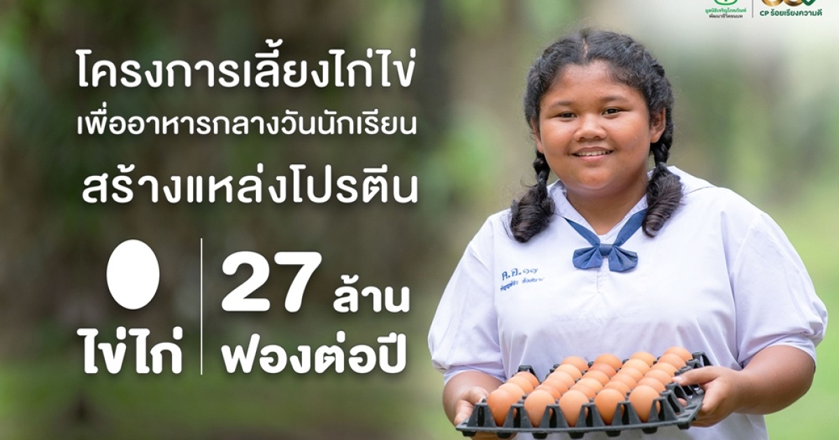 เครือเจริญโภคภัณฑ์ ซีพีเอฟ และมูลนิธิเจริญโภคภัณฑ์พัฒนาชีวิตชนบท ขับเคลื่อน “โครงการเลี้ยงไก่ไข่เพื่ออาหารกลางวันนักเรียน” ต่อเนื่องตลอด 36 ปี มุ่งส่งเสริมโภชนาการที่ดีแก่นักเรียนพื้นที่ห่างไกล ในโรงเรียนทั่วประเทศ 988 แห่ง ช่วยให้นักเรียนกว่า 223,000 คน ครู 16,500 คน และชุมชน ได้รับประโยชน์ทั้งทางตรงและทางอ้อม