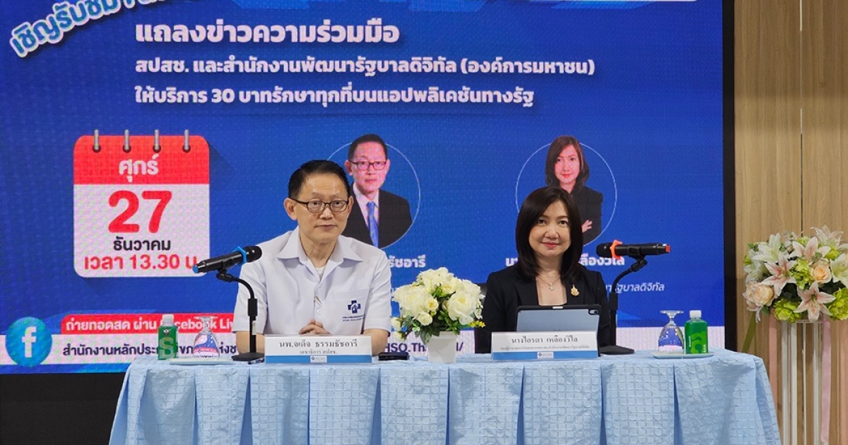 เมื่อวันที่ 27 ธันวาคม 2567 สำนักงานหลักประกันสุขภาพแห่งชาติ (สปสช.) และ สำนักงานพัฒนารัฐบาลดิจิทัล (องค์การมหาชน) (DGA) ร่วมแถลงข่าวความร่วมมือการให้บริการ 30 บาทรักษาทุกที่บน “แอปพลิเคชันทางรัฐ” เพื่อเพิ่มช่องทางการยืนยันตัวตนและใช้สิทธิหลักประกันสุขภาพแห่งชาติ (บัตรทอง 30 บาท) ให้กับประชาชนทางออนไลน์บนซูเปอร์แอปฯ ที่จัดทำโดย DGA ช่วยอำนวยสะดวก ขั้นตอนใช้งานง่าย ไม่ยุ่งยาก และมั่นใจในความปลอดภัยทางข้อมูล