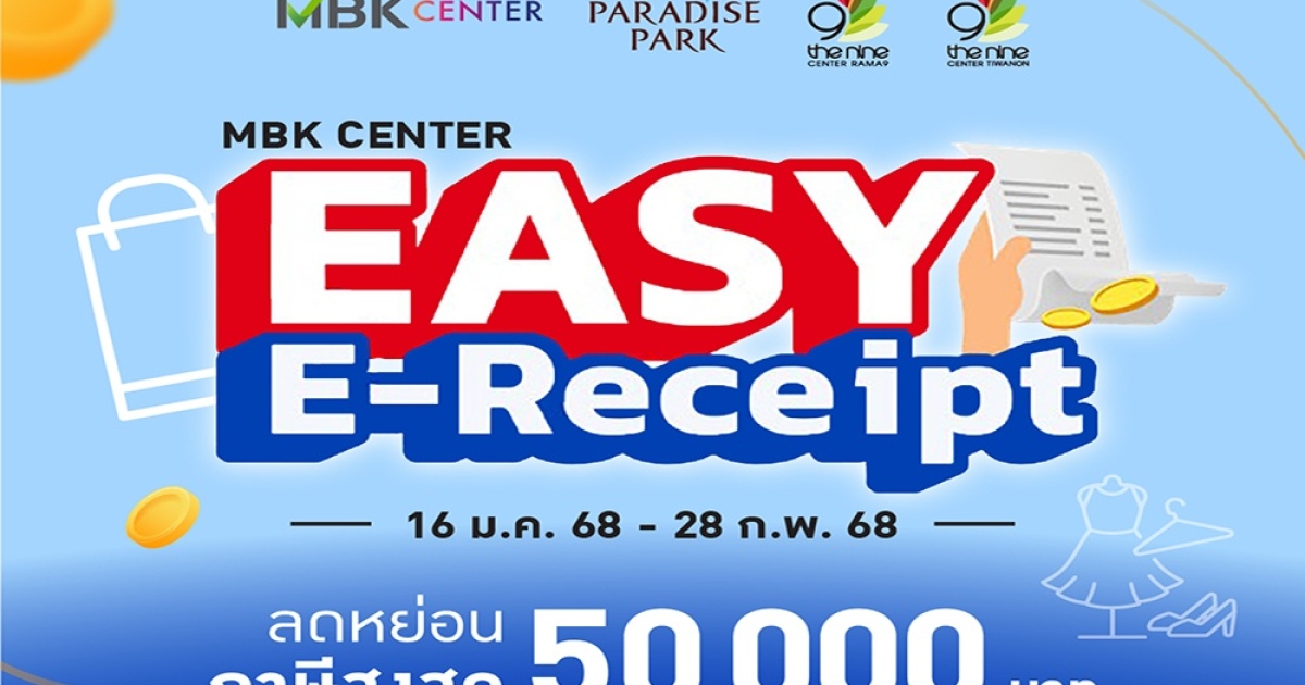 Easy E-Receipt กับศูนย์การค้าในเครือ เอ็ม บี เค ลดหย่อนภาษี ตั้งแต่ 16 มกราคม – 28 กุมภาพันธ์ 2568