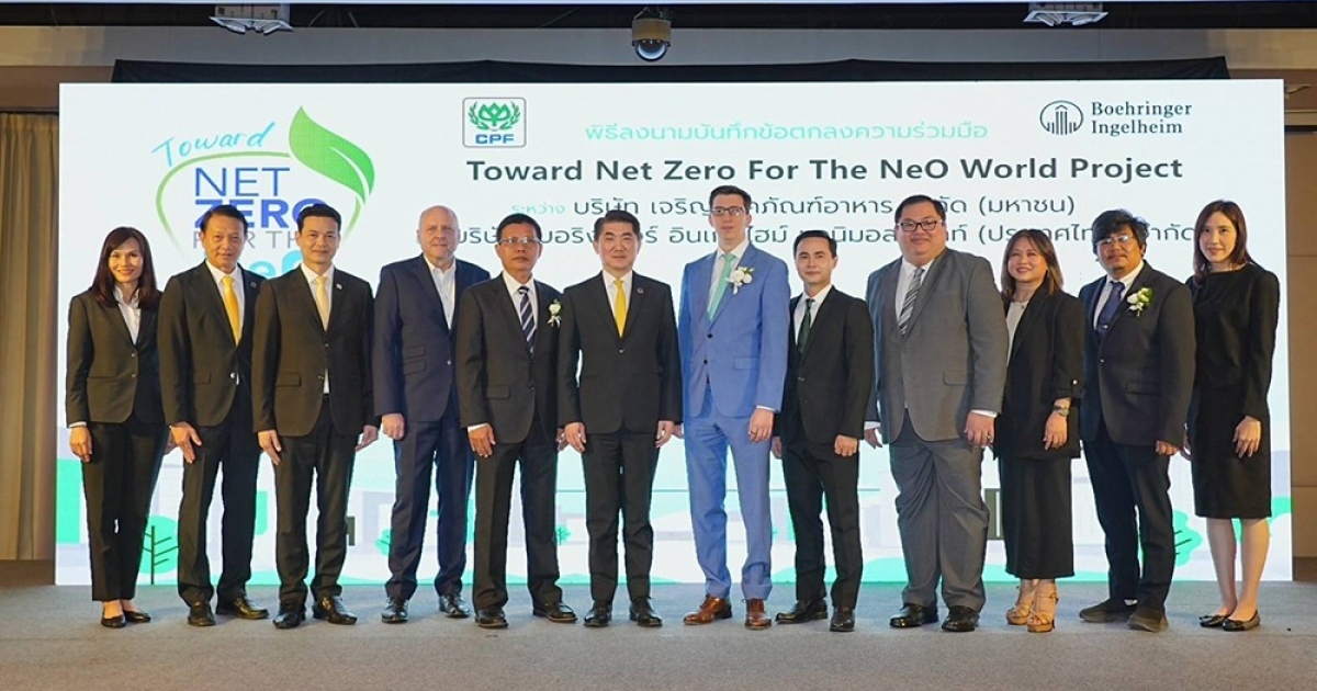 บริษัท เจริญโภคภัณฑ์อาหาร จำกัด (มหาชน) หรือ ซีพีเอฟ ผู้นำธุรกิจเกษตรอุตสาหกรรมและอาหารแบบครบวงจร ลงนามบันทึกข้อตกลงความร่วมมือ (MOU) กับบริษัท เบอริงเกอร์ อินเกลไฮม์ แอนิมอล เฮลท์ (ประเทศไทย) จำกัด ผู้นำระดับโลกด้านสุขภาพสัตว์ ขับเคลื่อนพันธกิจและความมุ่งมั่นในการมีส่วนร่วมสนับสนุนเป้าหมายลดการปล่อยก๊าซเรือนกระจกสุทธิเป็นศูนย์ (Net-Zero) ช่วยดูแลสิ่งแวดล้อม สร้างสังคมคาร์บอนต่ำ