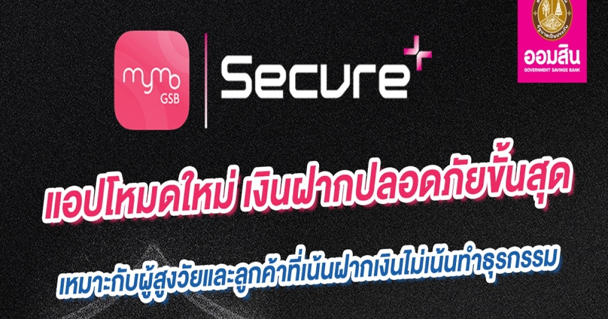 ออมสิน ชวนใช้ MyMo Secure Plus ป้องกันถูกมิจฉาชีพดูดเงินออกจากแอป เหมาะกับผู้สูงวัยและลูกค้าที่เน้นฝากเงินไม่เน้นทำธุรกรรม ให้เงินฝากปลอดภัยขั้นสุด