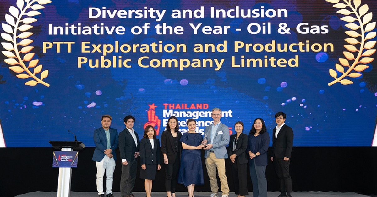 บริษัท ปตท.สำรวจและผลิตปิโตรเลียม จำกัด (มหาชน) หรือ ปตท.สผ. โดย ม.ล.พรรณะเลิศ วาสิกศิริ (กลาง) ผู้จัดการอาวุโส ฝ่ายปฏิบัติการทรัพยากรบุคคล รับมอบรางวัล “Thailand Diversity and Inclusion Initiative of the Year” ของกลุ่มอุตสาหกรรมน้ำมันและก๊าซธรรมชาติ จาก Mr. Mark Maclean (ที่ 4 จากขวา) HR Transformation Leader at Deloitte Southeast Asia และกรรมการในงานประกาศรางวัล Asian Management Excellence Awards 2025 จากการที่ ปตท.สผ. มีการส่งเสริมวัฒนธรรมความหลากหลาย ความเสมอภาค และการมีส่วนร่วม (Diversity, Equity, and Inclusion – DE&I) ผ่านโครงการและกิจกรรมต่าง ๆ ที่ส่งเสริมความเป็นอยู่ที่ดีของพนักงาน การสร้างสภาพแวดล้อมการทำงานที่เปิดกว้าง รวมทั้งการแลกเปลี่ยนองค์ความรู้ในองค์กร งานมอบรางวัลดังกล่าวจัดขึ้นโดยนิตยสาร Asian Business Review ณ โรงแรมคอนราด กรุงเทพฯ