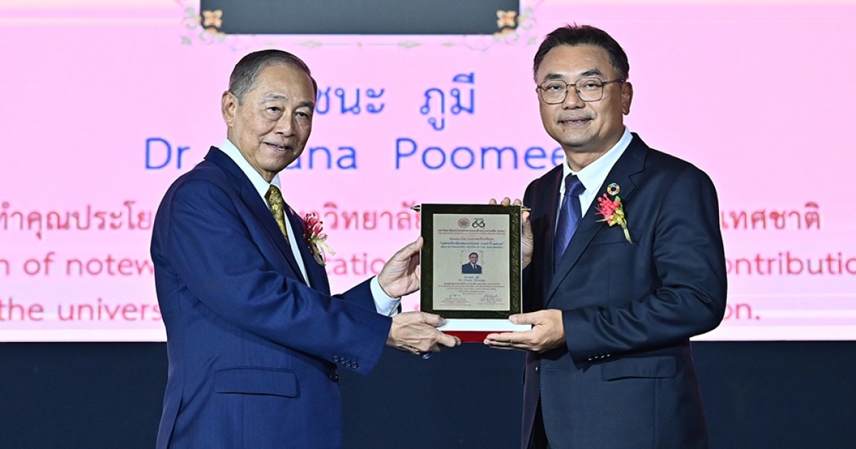 ดร.ชนะ ภูมี ผู้ช่วยผู้จัดการใหญ่ – การบริหารความยั่งยืน เอสซีจี (ขวา) รับมอบรางวัลบุคคลเกียรติยศ มจพ. (มหาวิทยาลัยเทคโนโลยีพระจอมเกล้าพระนครเหนือ) จากความทุ่มเทและอุทิศตนสร้างคุณงามความดีให้กับมหาวิทยาลัย ชุมชน สังคม และประเทศชาติ ประจำปี พ.ศ.2567 จาก พลอากาศเอกชลิต พุกผาสุข องคมนตรี กรรมการและเลขาธิการมูลนิธิพระดาบส (ซ้าย) ในวันคล้ายวันสถาปนามหาวิทยาลัยครบรอบ 66 ปี เมื่อเร็ว ๆ นี้ ณ มหาวิทยาลัยเทคโนโลยีพระจอมเกล้าพระนครเหนือ กรุงเทพฯ