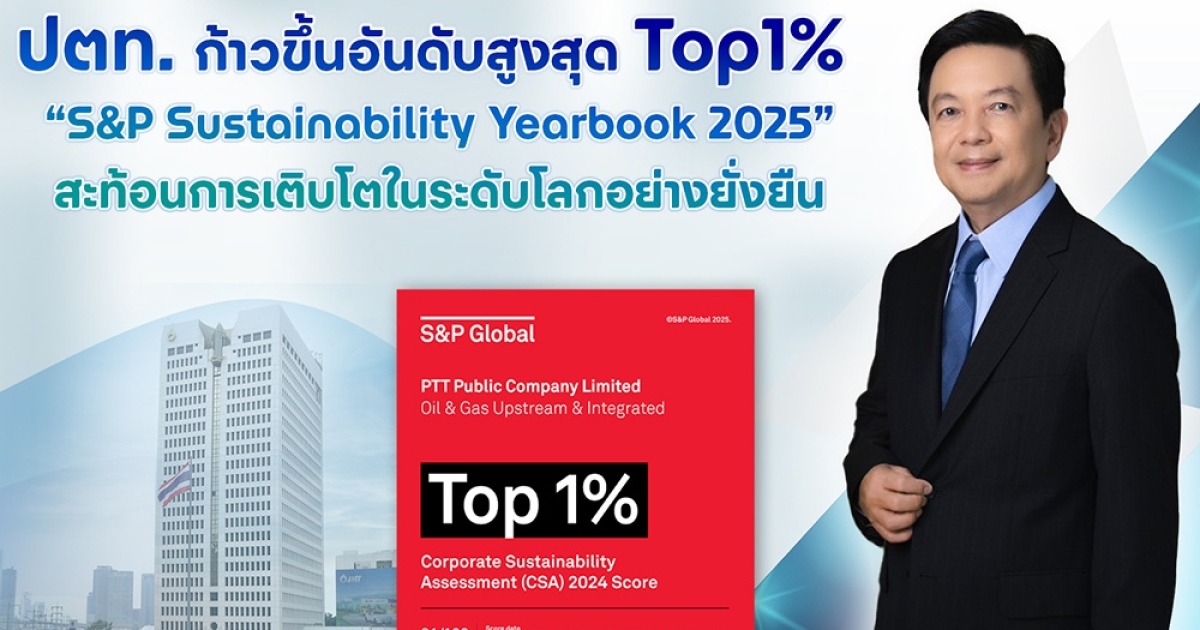 ปตท. ก้าวขึ้นอันดับสูงสุด Top1% “S&P Sustainability Yearbook 2025” สะท้อนการเติบโต ในระดับโลกอย่างยั่งยืน