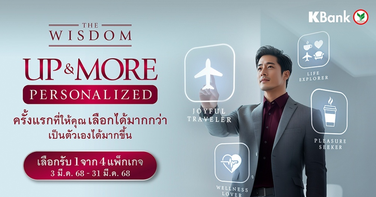เดอะวิสดอมกสิกรไทย เปิดตัวสิทธิพิเศษใหม่ “UP & MORE PERSONALIZED” ให้ลูกค้าเลือกแพ็กเกจที่ตรงกับไลฟ์สไตล์ และได้ใช้สิทธิเต็มที่