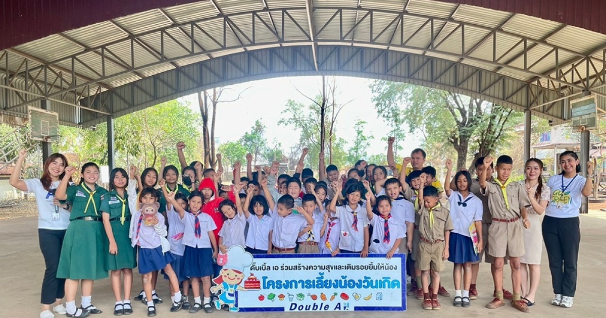 ของขวัญวันเกิดใดจะมีคุณค่าเท่ากับ การได้ทำสิ่งดีๆในวันเกิดให้กับสังคม อย่าง “กิจกรรมเลี้ยงน้องวันเกิด” ที่ดั๊บเบิ้ล เอ ให้ความสำคัญและสนับสนุนด้านเยาวชน จึงได้ดำเนินกิจกรรมนี้มาอย่างต่อเนื่องตั้งแต่ปีพ.ศ.2539 เพื่อส่งต่อรอยยิ้มและความสุขให้กับน้อง ๆ เยาวชนในจังหวัดปราจีนบุรีและฉะเชิงเทรา โดยเปิดโอกาสให้พนักงานดั๊บเบิ้ล เอ ได้มีส่วนร่วมทำความดีในเดือนเกิดของตนเอง ด้วยการเลี้ยงอาหารกลางวัน พร้อมมอบอุปกรณ์การเรียน อุปกรณ์กีฬา และผลิตภัณฑ์เพื่อสุขอนามัย Double A Care รวมทั้งมีกิจกรรมนอกห้องเรียนสอดแทรกความรู้ที่เพลิดเพลินให้กับน้องๆ เพื่อเสริมสร้างโภชนาการที่ดี และพัฒนาสุขภาวะทางจิตใจ ให้เยาวชนเติบโตอย่างมีคุณภาพเป็นกำลังสำคัญของประเทศในอนาคต