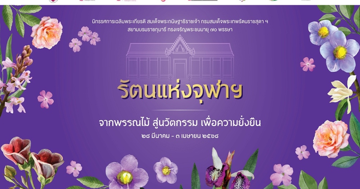 ในโอกาสที่สมเด็จพระกนิษฐาธิราชเจ้า กรมสมเด็จพระเทพรัตนราชสุดา ฯ สยามบรมราชกุมารี ทรงเจริญพระชนมายุ 70 พรรษา วันที่ 2 เมษายน 2568 คณะอักษรศาสตร์ จุฬาลงกรณ์มหาวิทยาลัย ร่วมกับบริษัท ไทยเบฟเวอเรจ จำกัด (มหาชน) ศูนย์การค้าสามย่านมิตรทาวน์ และหน่วยงานพันธมิตร ขอเชิญชมนิทรรศการ “รัตนแห่งจุฬาฯ” จากพรรณไม้ สู่นวัตกรรม เพื่อความยั่งยืน ที่จัดขึ้นเพื่อเผยแพร่พระราชกรณียกิจด้านการอนุรักษ์พืชพรรณไทยและการพัฒนาพรรณไม้ ด้วยนวัตกรรมเพื่อเพิ่มมูลค่าอย่างสร้างสรรค์ และร่วมรับฟังการเสวนาในหัวข้อต่างๆ โดยวิทยากรทั้งจากจุฬาลงกรณ์มหาวิทยาลัยและภาคเอกชน