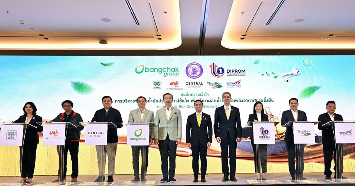 โดยเป็นการลงนามใน MOU ระหว่าง กระทรวงอุตสาหกรรม โดยกรมส่งเสริมอุตสาหกรรม กับบริษัท บางจาก คอร์ปอเรชั่น จำกัด (มหาชน) และพันธมิตรภาคธุรกิจที่มีการใช้น้ำมันปรุงอาหาร ได้แก่ กลุ่มเซ็นทรัล บริษัท ไทยเบฟเวอเรจ จำกัด (มหาชน) บริษัท เจริญโภคภัณฑ์อาหาร จำกัด (มหาชน) บริษัท ไทยเพรซิเดนท์ฟูดส์ จำกัด (มหาชน) และสมาคมผู้ผลิตอาหารสำเร็จรูป เพื่อสร้างเครือข่ายและส่งเสริมการบริหารจัดการโซ่อุปทานของ UCO ทั้งจากภาคอุตสาหกรรมและภาคบริการ สำหรับใช้เป็นวัตถุดิบในการผลิต SAF ในเชิงพาณิชย์ รองรับอุตสาหกรรมการบินของประเทศไทยให้มีมาตรฐานและเป็นที่ยอมรับในระดับสากล และสามารถลดผลกระทบต่อสิ่งแวดล้อมจากการขนส่งทางอากาศ ทำให้เกิดการใช้ทรัพยากรอย่างคุ้มค่า สร้างมูลค่าเพิ่มให้กับวัสดุเหลือทิ้ง ตามนโยบาย Bio-Circular-Green Economy