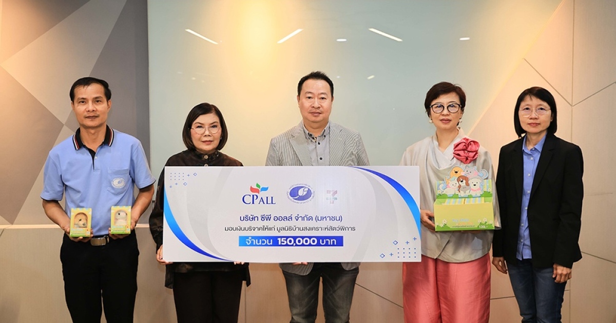 ซีพี ออลล์-เซเว่น อีเลฟเว่น ส่งมอบเงินจากการสนับสนุนของลูกค้า ในการจำหน่าย พวงกุญแจตุ๊กตาหมาแมว ที่เซเว่นฯ ให้กับมูลนิธิบ้านสงเคราะห์สัตว์พิการ