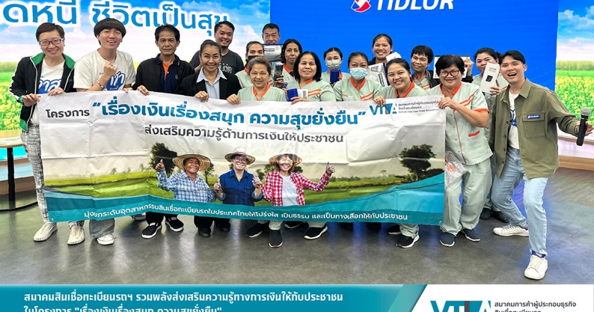 โครงการ “เรื่องเงินเรื่องสนุก ความสุขยั่งยืน” จัดโดย สมาคมการค้าผู้ประกอบธุรกิจสินเชื่อทะเบียนรถ (VTLA) วัตถุประสงค์เพื่อส่งเสริมความรู้ทางการเงินขั้นพื้นฐานให้กับชาวบ้านชาวชุมชนทั่วประเทศ โดยใช้หลักสูตร “ปลดหนี้ ชีวิตเป็นสุข” และ “ออมเงินง่ายๆ ที่ใครๆ ก็ทำได้” ผ่านความร่วมมือของสมาชิกสมาคมฯ ซึ่งปัจจุบันสมาคมมีสมาชิกผู้ประกอบการที่ได้รับใบอนุญาตจากธนาคารแห่งประเทศไทยจำนวนรวม 16 ราย มีสาขารวมกันทั่วประเทศกว่า 18,000 สาขา และมีฐานลูกค้ารวมกันกว่า 6 ล้านราย นอกจากนี้ทางสมาคมฯ ขอเรียนเชิญผู้ประกอบการสินเชื่อทะเบียนรถรายอื่นๆ สมัครเป็นสมาชิกของสมาคมฯ ได้ที่เบอร์โทรศัพท์ 065-919-0644 หรือเยี่ยมชมรายละเอียดเพิ่มเติมเกี่ยวกับสมาคมฯ ได้ที่ www.vtla.or.th