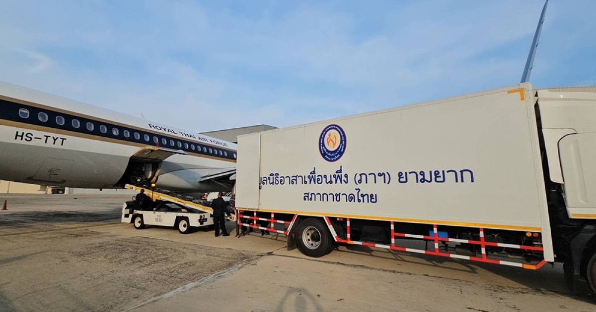 มูลนิธิอาสาเพื่อนพึ่ง (ภาฯ) ยามยาก สภากาชาดไทย โดยได้รับการสนับสนุนจาก สถานเอกอัครราชทูตไทย ณ กรุงย่างกุ้ง และ กองบัญชาการกองทัพไทย โดย กองทัพอากาศ กองบิน 601 แห่งราชอาณาจักรไทย ส่งมอบถุงยังชีพพระราชทาน จำนวน 250 ถุง เต็นท์นอน จำนวน 150 หลัง และสิ่งของบรรเทาทุกข์ แก่สาธารณรัฐแห่งสหภาพเมียนมา เพื่อช่วยเหลือผู้ประสบภัยจากเหตุแผ่นดินไหวที่เกิดขึ้นเมื่อวันที่ 28 มีนาคม 2568