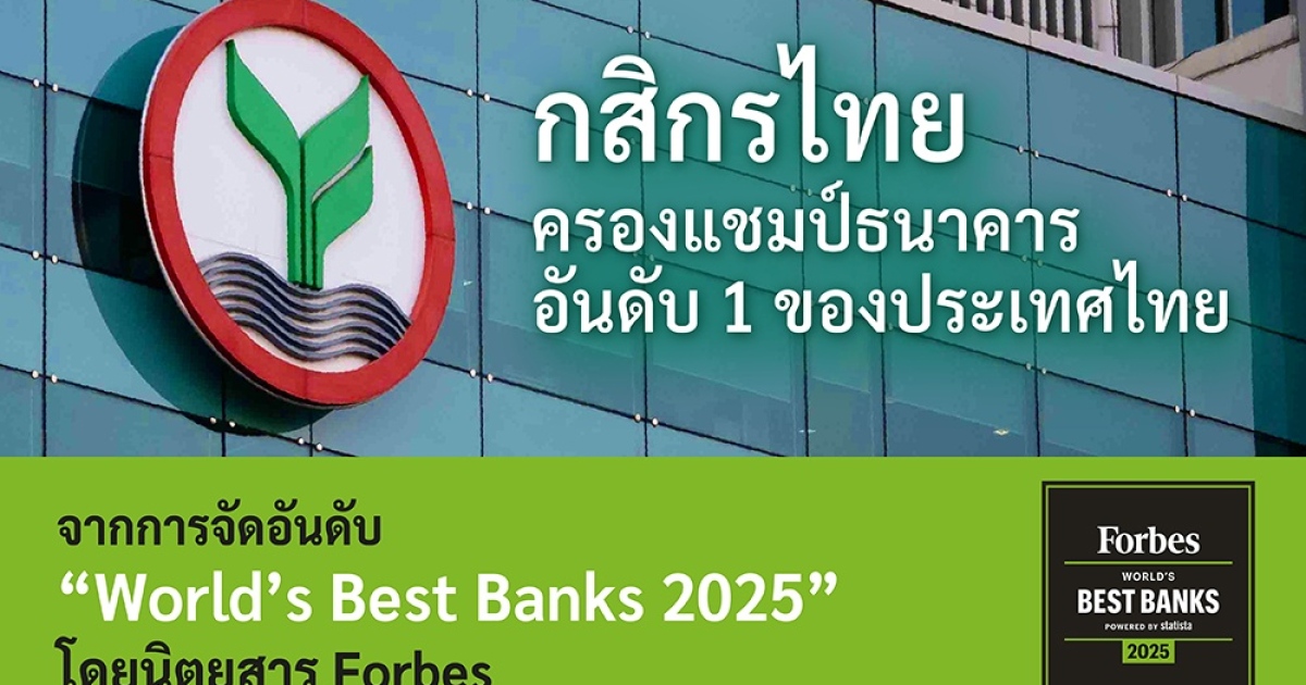 กสิกรไทย ครองแชมป์ธนาคารอันดับ 1 ของประเทศไทย จากการจัดอันดับ “World’s Best Banks 2025” โดยนิตยสาร Forbes