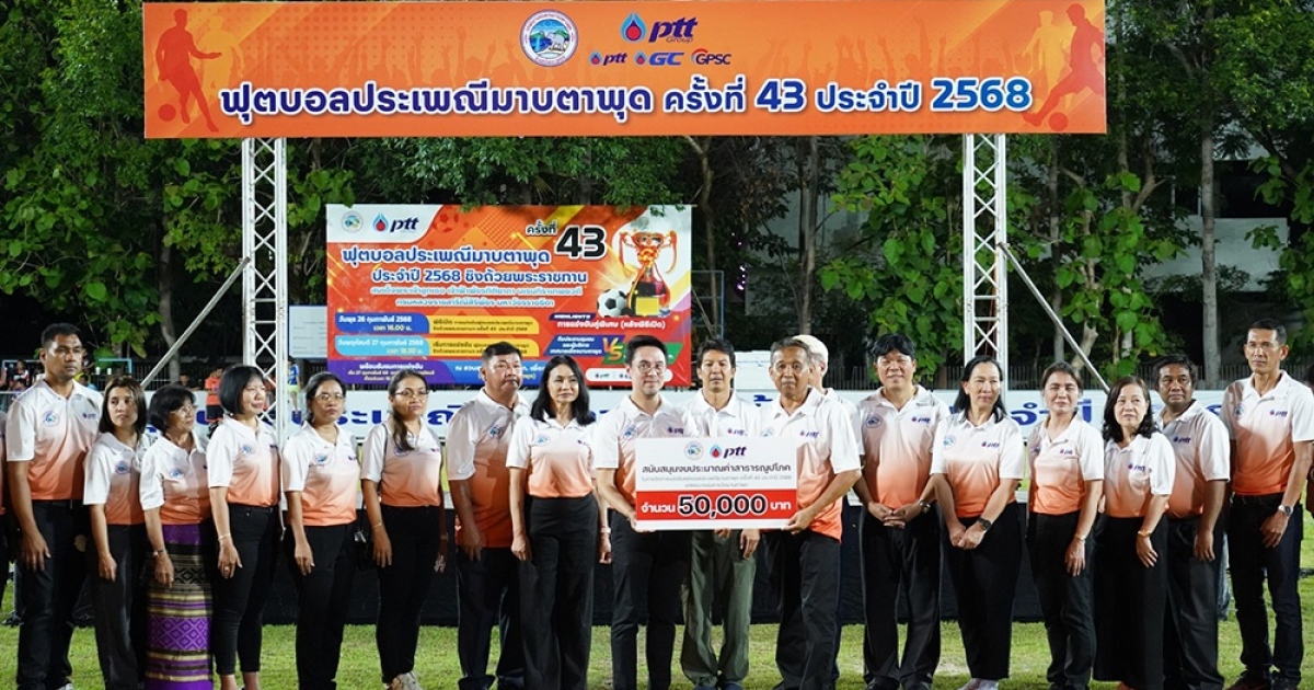 นายพัฑฒิ บุณยสุขานนท์ ผู้จัดการฝ่ายสื่อสารองค์กรและกิจการสาธารณะ บริษัท โกลบอล เพาเวอร์ ซินเนอร์ยี่ จำกัด (มหาชน) หรือ GPSC ในฐานะประธานอนุกรรมการชุมชนสัมพันธ์และการสื่อความกลุ่ม ปตท. จังหวัดระยอง พร้อมด้วยคณะผู้บริหารกลุ่ม ปตท. ผู้บริหาร และคณะกรรมการชุมชนเขตเทศบาลนครมาบตาพุด เข้าร่วมในพิธีปิดการแข่งขันฟุตบอลประเพณีมาบตาพุด ครั้งที่ 43 ประจำปี 2568 ณ สนามฟุตบอลสวนสุขภาพกลุ่ม ปตท. จังหวัดระยอง