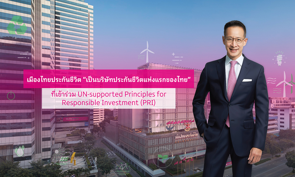 เมืองไทยประกันชีวิต เดินหน้านโยบายการสร้างความยั่งยืนในทุกมิติ พร้อมประกาศเป็นบริษัทประกันชีวิตแห่งแรกของไทยเข้าร่วมลงนาม UN-supported Principles for Responsible Investment (PRI)