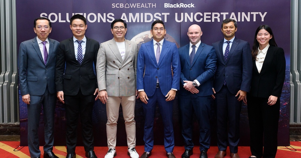 SCB WEALTH จัดงานสัมมนาให้แก่กลุ่มลูกค้า PRIVATE BANKING ภายใต้หัวข้อ “Solution Amidst Uncertainty ” โดยได้รับเกียรติจากผู้เชี่ยวชาญของ BlackRock ร่วมเป็นผู้บรรยายพิเศษ มุ่งเน้นการถอดรหัสทิศทางเศรษฐกิจโลกและไทย พร้อมทั้งแนวทางบริหารพอร์ตการลงทุนให้สามารถสร้างผลตอบแทนได้อย่างยั่งยืน แม้ต้องเผชิญกับความไม่แน่นอนที่ยังคงปกคลุมเศรษฐกิจโลก งานสัมมนาในครั้งนี้ ได้รับเกียรติจาก นายแพททริก ปูเลีย (กลาง) รองผู้จัดการใหญ่ Head of Financial Markets Function และ Head of Private Banking Relationship Management ธนาคารไทยพาณิชย์ พร้อมด้วย นายนิคิล มัจรา (ที่2ขวา) Managing Director,Head of APAC Multi-Asset Strategies & Solutions, BlackRock นายมาร์ก ฟัสชาร์ด (ที่ 3 ขวา) Director , APAC Multi-Asset Strategies & Solutions , BlackRock ดร.ปิยศักดิ์ มานะสันต์ (ที่3 ซ้าย) หัวหน้านักวิจัยเศรษฐกิจ บริษัทหลักทรัพย์ อินโนเวสท์ เอกซ์ นายธณาพล อิทธินิธิภัค (ที่ 2ซ้าย) Head of Thailand Business, BlackRock และนายรุ่งโรจน์ เสกสรรค์วิริยะ (ที่1ซ้าย) ผู้อำนวยการ Investment Product ธนาคารไทยพาณิชย์ ร่วมงานสัมมนา เมื่อเร็วๆนี้ ณ โรงแรมโซ แบงคอก กรุงเทพฯ
