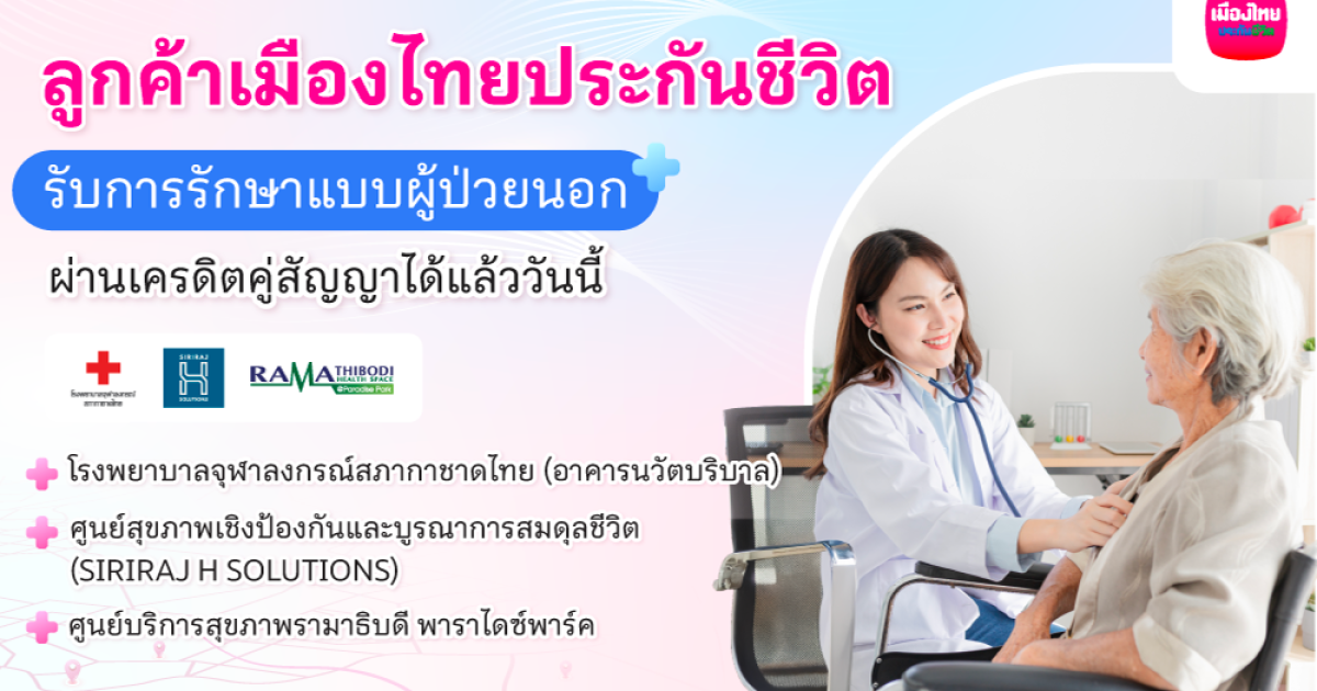 เมืองไทยประกันชีวิต มุ่งมั่นยกระดับประสบการณ์การดูแลสุขภาพลูกค้าอย่างต่อเนื่อง ล่าสุด เปิดให้บริการ “ยื่นเคลมผู้ป่วยนอก (OPD)” แบบไม่ต้องสำรองจ่าย ผ่านระบบเครดิตคู่สัญญา (Cashless Claim) กับสถานพยาบาลชั้นนำ เพื่อมอบความสะดวกสบาย อุ่นใจกับค่ารักษาพยาบาล พร้อมเปิดตัว 3 พันธมิตรใหม่ เพิ่มความมั่นใจให้แก่ลูกค้าทุกช่วงเวลาของการดูแลสุขภาพ