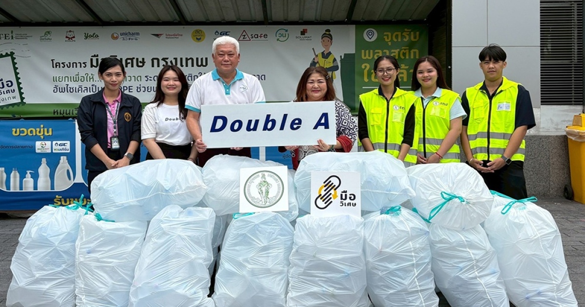 นายชาญวิทย์ จารุสมบัติ รองกรรมการผู้จัดการใหญ่ ดั๊บเบิ้ล เอ เป็นตัวแทนมอบขวดน้ำพลาสติกใส จำนวน 27 กิโลกรัม จากกิจกรรมที่ดั๊บเบิ้ล เอ รณรงค์ให้พนักงานตระหนักถึงความสำคัญของการแยกขยะ ซึ่งสามารถนำมาอัพไซเคิล (upcycle) ให้เกิดประโยชน์ ผ่านโครงการมือวิเศษ กรุงเทพ “แยกเพื่อให้...พี่ไม้กวาด” เพื่อนำไปผลิตเป็นเสื้อกั๊กสะท้อนแสง สำหรับบุคลากรผู้ปฏิบัติงานด้านการรักษาความสะอาดของกรุงเทพฯ เพิ่มความปลอดภัยในการทำงาน โดยมี นางสาวลลิดา กังวาลชิรธาดา ผู้อำนวยการส่วนบริการจัดการมูลฝอย สำนักงานยุทธศาสตร์จัดการมูลฝอย สำนักสิ่งแวดล้อม เป็นผู้รับมอบ ณ จุดรับขยะแยกประเภท (Drop off Point) ศาลาว่าการกรุงเทพมหานคร ดินแดง