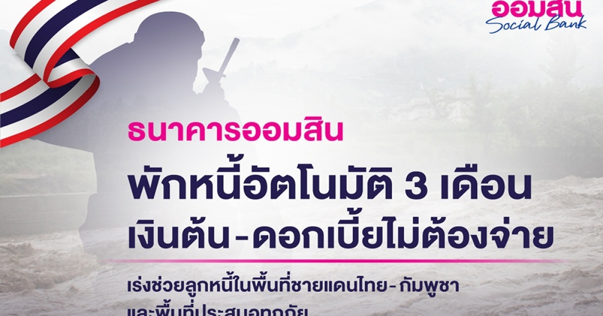 ออมสินพักหนี้อัตโนมัติ 3 เดือน – ยกดอกเบี้ยให้ลูกหนี้ไม่ต้องจ่าย! เร่งช่วยลูกหนี้ในพื้นที่ชายแดนไทย-กัมพูชา และพื้นที่ประสบอุทกภัย