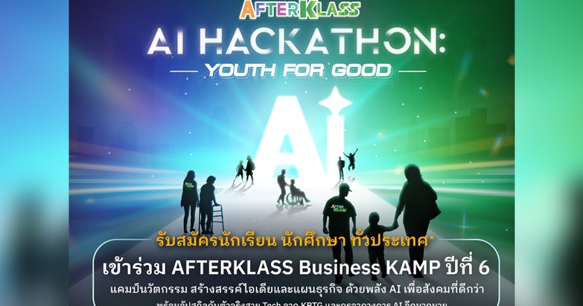 ธนาคารกสิกรไทยเดินหน้าส่งเสริมศักยภาพเยาวชนไทยผ่านโครงการ “AFTERKLASS Business KAMP ปีที่ 6” แคมป์นวัตกรรมสุดเข้มข้น AFTERKLASS AI Hackathon: Youth for Good ที่เปิดเวทีให้เยาวชนอายุ 15–21 ปีบริบูรณ์ ที่มีทั้งไอเดียธุรกิจสุดสร้างสรรค์ด้วยพลังของ AI และสนใจใช้เทคโนโลยีเพื่อสร้างสรรค์สิ่งดี ๆ ให้แก่สังคม ได้ร่วมพัฒนาแนวคิดธุรกิจเพื่อช่วยเหลือกลุ่มเปราะบางในประเทศไทย โดยใช้เทคโนโลยีปัญญาประดิษฐ์ (AI) เป็นเครื่องมือหลักในการขับเคลื่อน พร้อมเปิดรับสมัครทั่วประเทศตั้งแต่วันนี้ จนถึง วันที่ 27 สิงหาคม 2568