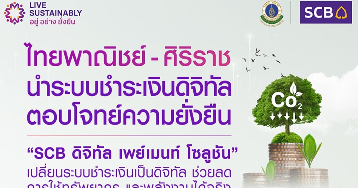 ทั้งนี้ โรงพยาบาลศิริราชเริ่มเปลี่ยนมาใช้ SCB ดิจิทัล เพย์เมนท์ โซลูชัน ตั้งแต่ปี 2567 จนถึงเดือนเมษายน 2568 สามารถลดการใช้ทรัพยากรและพลังงานจากกระบวนการชำระเงินรูปแบบเดิมได้จริงเทียบเท่าการปล่อยก๊าซเรือนกระจก 93 ตันคาร์บอนต่อปี หรือ เทียบเท่ากับการดูดซับคาร์บอนไดออกไซด์ของต้นไม้จำนวน 10,000 ต้นต่อปี (โดยเฉลี่ยต้นไม้ 1 ต้นดูดซับ CO2 ได้ 9.5 kg/ปี) และส่งผลการเปลี่ยนแปลงที่เป็นรูปธรรม อาทิ ลดค่าใช้จ่ายที่เกิดจากการออกเช็ค 26,800 ฉบับ ลดการใช้กระดาษตลอดกระบวนการชำระเงินถึง 650,000 แผ่น ลดพลังงานจากการเดินทางเพื่อรับ-ส่งเช็คประมาณปีละกว่า 1,400,000 กิโลเมตร ลดชั่วโมงการทำงานที่เกี่ยวข้องกับการจ่ายเช็คได้กว่า 480 ชั่วโมง ซึ่งนับเป็นผลพลอยได้ที่สามารถสร้างการเปลี่ยนแปลงทางด้านความยั่งยืนอย่างชัดเจนจากการยกระดับงานสู่ดิจิทัล