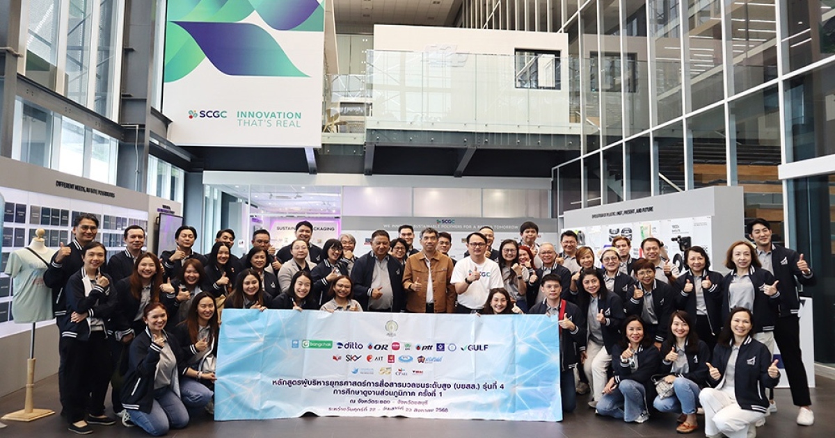 นายชวรงค์ ลิมป์ปัทมปาณี ผู้อำนวยการหลักสูตร นางสาวอมรรัตน์ มหิทธิรุกข์ ผู้จัดการหลักสูตร และ พล.อ.ท. ประภาส สอนใจดี ประธานรุ่น นำคณะผู้เข้ารับการอบรมหลักสูตรผู้บริหารยุทธศาสตร์การสื่อสารมวลชนระดับสูง (บยสส.) รุ่นที่ 4 เข้ารับฟังการบรรยายสรุปการดำเนินงานและเยี่ยมชม ศูนย์นวัตกรรมครบวงจร SCGC หรือ i2P Center จังหวัดระยอง ในโอกาสศึกษาดูงานส่วนภูมิภาค ครั้งที่ 1 ทั้งนี้มี ดร.สุรชา อุดมศักดิ์ ประธานเจ้าหน้าที่สายงานปฎิบัติการและนวัตกรรม บริษัท เอสซีจี เคมิคอลส์ จำกัด (มหาชน) (SCGC) และทีมงานให้การต้อนรับ เมื่อวันศุกร์ที่ 22 สิงหาคม 2568 ที่ผ่านมา