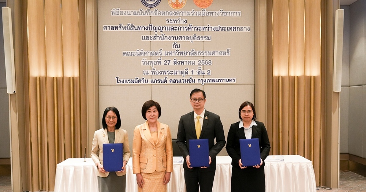 จากนั้น ได้มีพิธีลงนาม "บันทึกข้อตกลงความร่วมมือทางวิชาการระหว่างศาลทรัพย์สินทางปัญญาและการค้าระหว่างประเทศกลาง และสำนักงานศาลยุติธรรม กับคณะนิติศาสตร์ มหาวิทยาลัยธรรมศาสตร์” เพื่อร่วมมือกันในการจัดการศึกษา ฝึกอบรม ประชุมทางวิชาการและการสัมมนา รวมถึงเสริมสร้าง องค์ความรู้ประสบการณ์และความชำนาญเกี่ยวกับทรัพย์สินทางปัญญาและการค้าระหว่างประเทศ และร่วมมือในการศึกษาค้นคว้าวิจัย แลกเปลี่ยนข้อมูลทางด้านกฎหมาย การฝึกอบรมสัมมนา การบรรยาย การทำกิจกรรม และการแบ่งปันประสบการณ์ โดย มี นางธารทิพย์ จงจักรพันธ์ อธิบดีศาลทรัพย์สินทางปัญญาและการค้าระหว่างประเทศกลาง นายธีรทัย เจริญวงศ์ เลขาธิการลขาธิการสำนักงานศาลยุติธรรม รองศาสตราจารย์ ดร.สุปรียา แก้วละเอียด คณบดีคณะนิติศาสตร์ มหาวิทยาลัยธรรมศาสตร์ ร่วมลงนาม