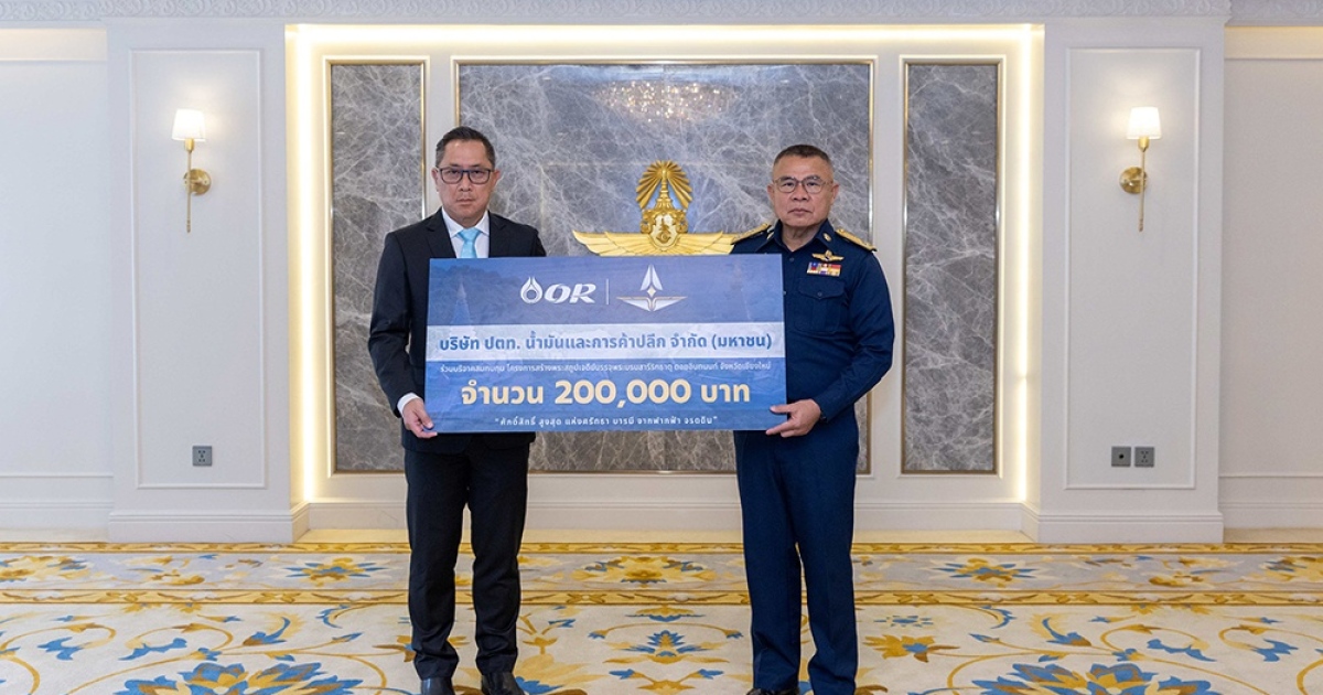 พลอากาศเอก พันธ์ภักดี พัฒนกุล ผู้บัญชาการทหารอากาศ ให้เกียรติรับมอบเงินบริจาค จาก หม่อมหลวงปีกทอง ทองใหญ่ ประธานเจ้าหน้าที่บริหาร บริษัท ปตท. น้ำมันและการค้าปลีก จำกัด (มหาชน) หรือ OR เพื่อสมทบทุนโครงการสร้างพระสถูปเจดีย์บรรจุพระบรมสารีริกธาตุ องค์ที่ 3 ณ อุทยานแห่งชาติดอยอินทนนท์ จ.เชียงใหม่ โดยมี นายไพศาล อุดมกุลวณิชย์ รองประธานเจ้าหน้าที่บริหารด้านธุรกิจเอนเนอร์ยี่โซลูชัน และนายทรงพล เทพนำโสมนัสส์ รองประธานเจ้าหน้าที่บริหารด้านธุรกิจต่างประเทศ OR ร่วมในพิธี ณ ห้องรับรองบริพัตร กองบัญชาการกองทัพอากาศ