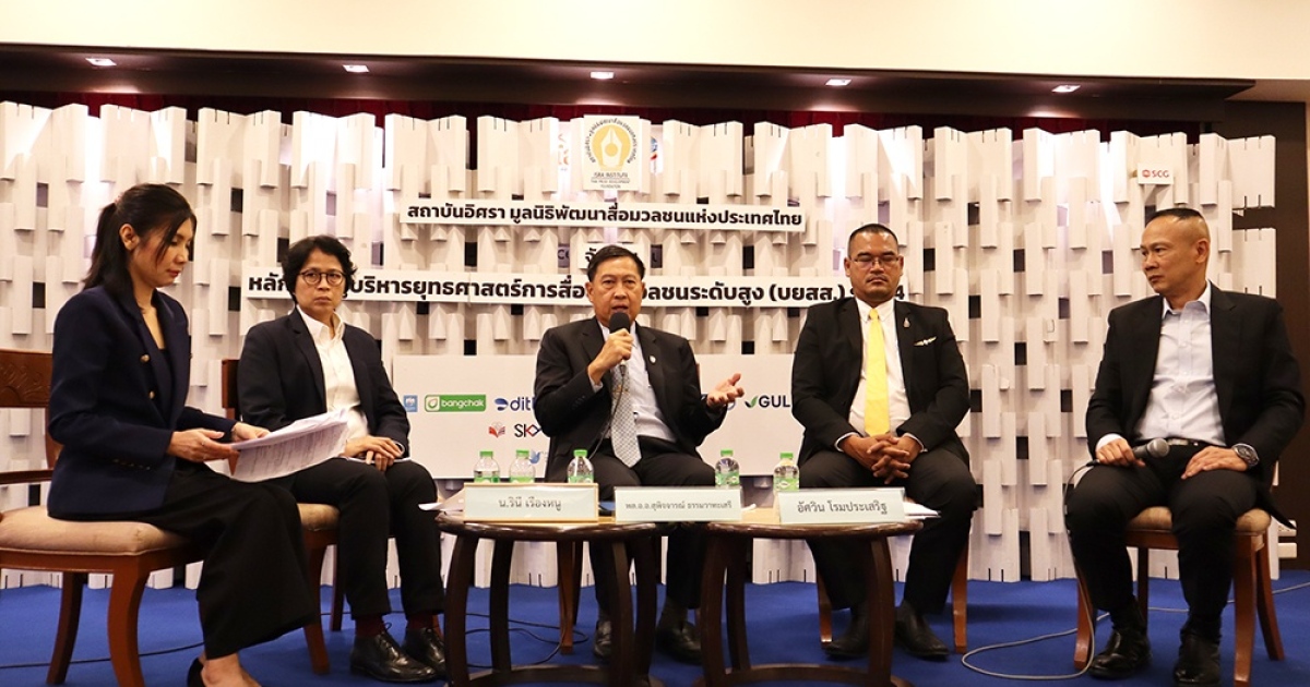 นายประสงค์ เลิศรัตนวิสุทธิ์ ผู้อำนวยการบริหารสถาบันอิศรา พร้อมด้วย นายชวรงค์ ลิมป์ปัทมปาณี ผู้อำนวยการหลักสูตร พล.อ.ท.ประภาส สอนใจดี ประธานรุ่น / ประธานกลุ่มที่ 2 และผู้เข้าอบรมหลักสูตรผู้บริหารยุทธศาสตร์การสื่อสารมวลชนระดับสูง (บยสส.) รุ่นที่ 4 กลุ่มที่ 2 ให้การต้อนรับพล.อ.อ.สุพิจจารณ์ ธรรมวาทะเสรี อนุกรรมาธิการกิจการทางทหาร ด้านไซเบอร์ เทคโนโลยี อาวุธยุทโธปกรณ์และอุตสาหกรรมป้องกันประเทศ (คณะกรรมาธิการทหารและความมั่นคงของรัฐสภา วุฒิสภา) และนายอัศวิน โรมประเสริฐ ประธานเจ้าหน้าที่บริหาร บริษัท อีซี่ (2018) จำกัด และผู้ก่อตั้งสมาคมตอบโต้ภัยพิบัติ ประเทศไทย ในโอกาสเสวนาสัมมนากลุ่มย่อย กลุ่มที่ 2 หัวข้อ “Drone Horizon 360° : จากสมรภูมิรบสู่เวทีสื่อสารและเศรษฐกิจ”เมื่อวันเสาร์ที่ 20 กันยายน 2568 ที่ผ่านมา ณ ห้องบงกชรัตน์ บี ชั้น 2 โรงแรมรอยัล ริเวอร์ บางพลัด กรุงเทพฯ