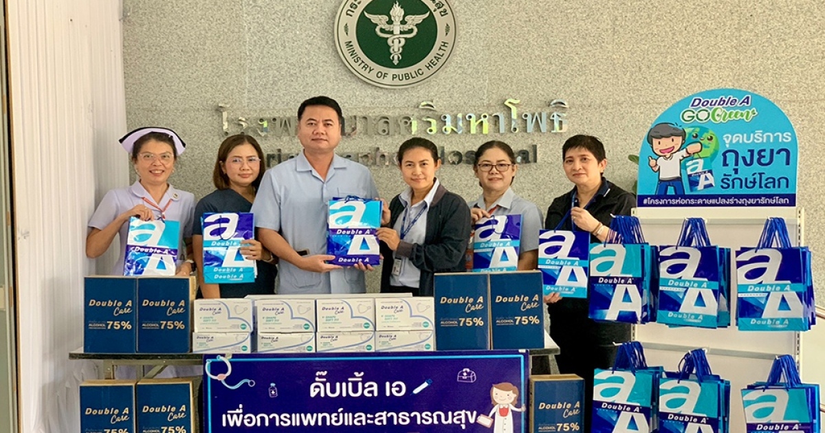 ดั๊บเบิ้ล เอ เดินหน้าขับเคลื่อนโมเดลทรัพยากรอย่างรู้คุณค่า ภายใต้โครงการ “กระดาษแปลงร่าง ถุงยารักษ์โลก” โดยมอบถุงใส่ยาที่ทำมาจากห่อกระดาษดั๊บเบิ้ล เอ จำนวน 1,500 ใบ ให้กับโรงพยาบาลศรีมหาโพธิ จังหวัดปราจีนบุรี เพื่อใช้ใส่ยาให้ผู้ป่วย และยังสามารถนำกลับมาใช้รับยาในครั้งต่อไปได้ซ้ำ พร้อมทั้งได้มอบผลิตภัณฑ์เพื่อสุขอนามัย Double A Care อาทิ หน้ากากอนามัยและแอลกอฮอล์ฆ่าเชื้อ โดยมี นายสมบูรณ์ทรัพย์ สอสะอาด หัวหน้าฝ่ายบริหารงานทั่วไป รพ.ศรีมหาโพธิ เป็นผู้แทนรับมอบ