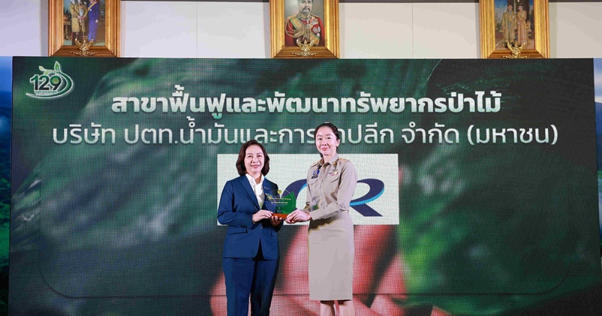 นางสาววรรณวิสาข์ สู่ศุภอรรถ ผู้จัดการฝ่ายบริหารความยั่งยืน และคุณภาพ ความปลอดภัย อาชีวอนามัย และสิ่งแวดล้อม บริษัท ปตท. น้ำมันและการค้าปลีก จำกัด (มหาชน) (OR) เป็นผู้แทนรับโล่รางวัลผู้ช่วยเหลือราชการกรมป่าไม้ ในสาขาการฟื้นฟูและพัฒนาทรัพยากรป่าไม้ เนื่องในโอกาสวันสถาปนากรมป่าไม้ ครบรอบ 129 ปี จาก ดร.ชญานันท์ ภักดีจิตต์ ปลัดกระทรวงทรัพยากรธรรมชาติและสิ่งแวดล้อม (ทส.) เป็นประธานในพิธี ณ กรมป่าไม้