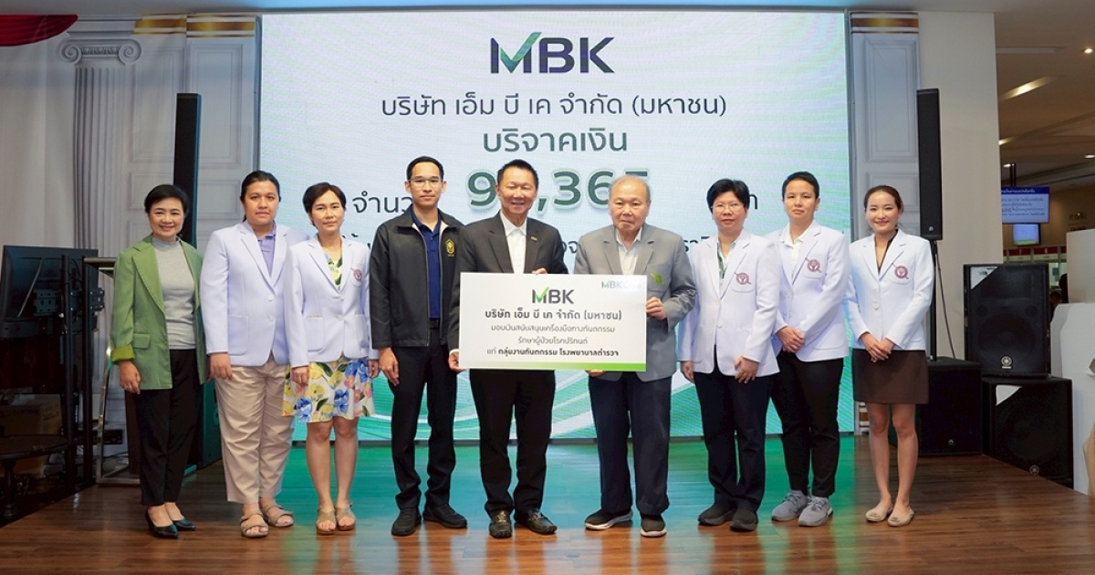 นายสมพล ตรีภพนารถ ประธานเจ้าหน้าที่บริหารธุรกิจศูนย์การค้า บริษัท เอ็ม บี เค จำกัด (มหาชน) (ที่ 5 จากซ้าย) มอบเงินสนับสนุนเครื่องมือทางทันตกรรมรักษาผู้ป่วยโรคปริทนต์ เพื่อใช้ในการให้บริการทางทันตกรรมแก่ประชาชน โดยมี พลตำรวจตรีทรงชัย สิมะโรจน์ เหรัญญิก มูลนิธิโรงพยาบาลตำรวจ (ที่ 6 จากซ้าย) และ พันตำรวจเอกหญิงบุณฑริกา สุวรรณเวโช หัวหน้ากลุ่มงานทันตกรรม โรงพยาบาลตำรวจ (ที่ 7 จากซ้าย) ผู้รับมอบ ณ อาคารมหาภูมิพลราชานุสรณ์ 88 พรรษา โรงพยาบาลตำรวจ เมื่อเร็ว ๆ นี้