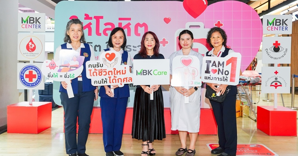 ศูนย์การค้าเอ็ม บี เค เซ็นเตอร์ ใส่ใจคุณภาพชีวิตที่ดีของคนไทย สานต่อการให้อย่างยั่งยืน ภายใต้แนวคิด MBK Care ร่วมกับ ศูนย์บริการโลหิตแห่งชาติ และ ศูนย์รับบริจาคอวัยวะ สภากาชาดไทย จัดกิจกรรม บริจาคโลหิต อวัยวะและดวงตา หนึ่งคนให้หลายคนรับ ครั้งที่ 19 ประจำปี 2568 โดยมี นางสาวสหัพย์ภัค โชควิจิตรกุล (ที่ 3 จากซ้าย) กรรมการผู้จัดการศูนย์การค้าเอ็ม บี เค เซ็นเตอร์ บริษัท เอ็มบีเค เซอร์วิส โซลูชั่น จำกัด ให้การต้อนรับคณะแพทย์ พยาบาล และเจ้าหน้าที่จากสภากาชาดไทย โดยมีผู้ลงทะเบียนบริจาค 145 ราย จำนวนโลหิตที่ได้รับ 106 ยูนิต ผู้บริจาคดวงตา อวัยวะและร่างกาย จำนวน 58 ราย ณ ชั้น 6 โซน D เมื่อเร็ว ๆ นี้