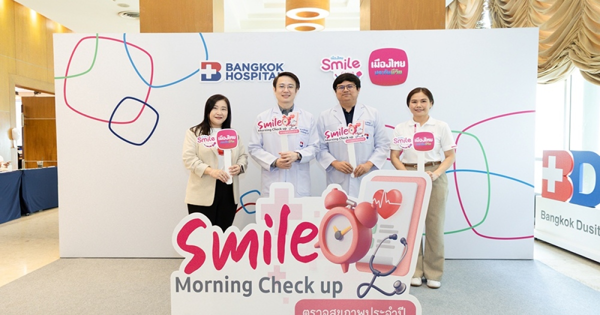 บริษัท เมืองไทยประกันชีวิต จำกัด (มหาชน) โดย เมืองไทยสไมล์คลับ ร่วมกับโรงพยาบาลกรุงเทพ ห่วงใยและใส่ใจด้านสุขภาพ จัดกิจกรรมตรวจสุขภาพประจำปี “Smile Morning Check up” ให้กับสมาชิกเมืองไทยสไมล์คลับ เพื่อให้ทุกคนได้รู้ถึงสุขภาพของตนเองและเตรียมพร้อมในการดูแลตัวเองได้อย่างถูกต้อง งานจัดขึ้น ณ โรงพยาบาลกรุงเทพ สำนักงานใหญ่ (ซ.ศูนย์วิจัย) โดยในงานมีนางสาวพรทิวา พฤกสถิตย์ ผู้ช่วยกรรมการผู้จัดการ บริษัท เมืองไทยประกันชีวิต จำกัด (มหาชน) พร้อมนายแพทย์ชยพล ชีถนอม อายุรแพทย์ Cardio-metabolic และนายแพทย์ชาติทนง ยอดวุฒิ อายุรศาสตร์เฉพาะทางโรคหัวใจ โรงพยาบาลกรุงเทพ ร่วมให้การต้อนรับ