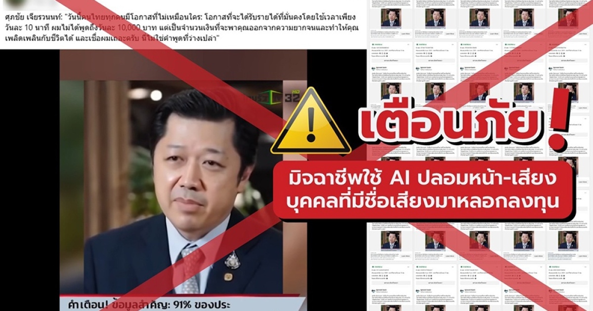 ซีพี เตือนภัยมิจฉาชีพนำภาพ “นายศุภชัย เจียรวนนท์” ตัดต่อคลิปปลอม หลอกลงทุน ย้ำประชาชนอย่าหลงเชื่อ