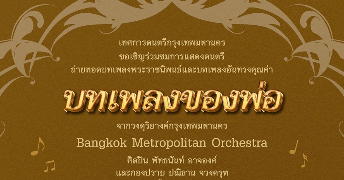 เอ็ม บี เค เซ็นเตอร์ ร่วมกับ สำนักงานเขตปทุมวัน ขอเชิญร่วมชมการแสดงคอนเสิร์ตดนตรีบรรเลง อัญเชิญบทเพลงพระราชนิพนธ์และบทเพลงอันทรงคุณค่าในงาน “บทเพลงของพ่อ” น้อมรำลึกในพระมหากรุณาธิคุณ เนื่องในวันคล้ายวันสวรรคต พระบาทสมเด็จพระบรมชนกาธิเบศร มหาภูมิพลอดุลยเดชมหาราช บรมนาถบพิตร “วันนวมินทรมหาราช” 13 ตุลาคม 2568 เพื่อให้ประชาชนได้รับฟังบทเพลงพระราชนิพนธ์อันแสดงถึงพระปรีชาสามารถขององค์อัครศิลปินของไทย และพระมหากรุณาธิคุณของพระองค์ท่านที่มีต่อวงการเพลงไทย โดยการบรรเลงของ วงซิมโฟนีออเคสตรา Bangkok Metropolitan Orchestra วงดุริยางค์กรุงเทพมหานคร อำนวยเพลงโดย สรพจน์ วรแสง พร้อมด้วยศิลปินรับเชิญ พัทธนันท์ อาจองค์ และ กองปราบ ปณิธาน จวงครุฑ ในวันศุกร์ที่ 10 ตุลาคม 2568 ตั้งแต่เวลา 17.00 น. – 18.30 น. บริเวณลานสกาย วอล์ค ชั้น 2 ศูนย์การค้าเอ็ม บี เค เซ็นเตอร์