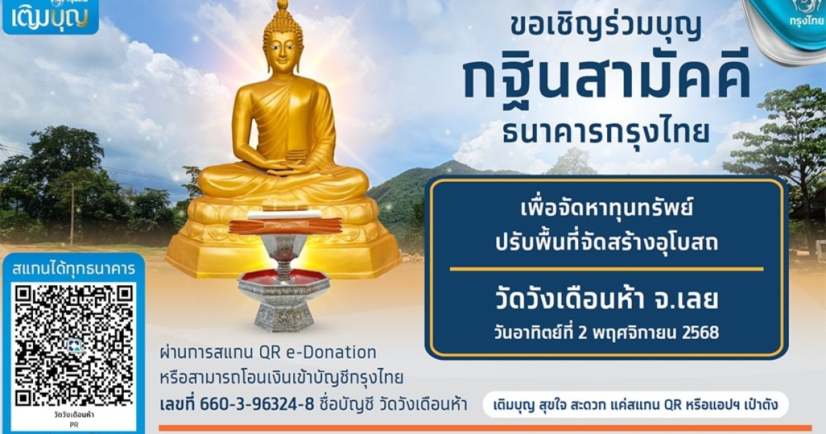 กรุงไทย เชิญชวนร่วมบุญมหากุศล “กฐินสามัคคีธนาคารกรุงไทย” เพื่อปรับที่ดินสร้างอุโบสถ วัดวังเดือนห้า จังหวัดเลย