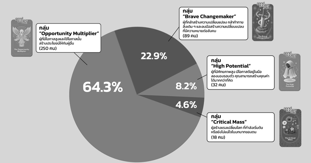 ผลการตอบคำถามทั้งหมดถูกสรุปออกมาเป็น “การ์ดโปรไฟล์” ออนไลน์ เพื่อให้ผู้เข้าร่วมเห็นภาพตนเองในสังคมได้ชัดเจนขึ้น ประกอบด้วย 4 โปรไฟล์ ดังนี้