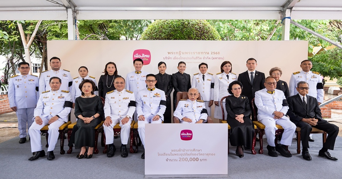 บริษัท เมืองไทยประกันชีวิต จำกัด (มหาชน) นำโดย นายโพธิพงษ์ ล่ำซำ ประธานกรรมการ นางยุพา ล่ำซำ นายสาระ ล่ำซำ ประธานเจ้าหน้าที่บริหาร นางสลิล ล่ำซำ นางจันทรา บูรณฤกษ์ ที่ปรึกษาคณะกรรมการบริษัท นายกนิช บุณยัษฐิติ กรรมการบริษัท ดร.ณฐพร พันธุ์อุดม กรรมการบริษัท นายภูมิชาย ล่ำซำ ที่ปรึกษาประธานเจ้าหน้าที่บริหาร และ ดร.สุธี โมกขะเวส กรรมการผู้จัดการ พร้อมด้วยนายชูฉัตร ประมูลผล เลขาธิการคณะกรรมการกำกับและส่งเสริมการประกอบธุรกิจประกันภัย นางสาววสุมดี วสีนนท์ รองเลขาธิการคณะกรรมการกำกับและส่งเสริมการประกอบธุรกิจประกันภัย นางสาวพิมพ์จุฑา สกุนสิทธิ์ธาดา ผู้อำนวยการเขตวัฒนา คณะผู้บริหารเขตวัฒนา รวมทั้งคณะผู้บริหาร และพนักงาน บริษัท เมืองไทยประกันชีวิต จำกัด (มหาชน) บริษัทคู่ค้า ลูกค้า และผู้มีจิตศรัทธา ร่วมน้อมถวายผ้าพระกฐินพระราชทาน ประจำปี 2568 แด่พระสงฆ์จำพรรษากาลถ้วนไตรมาส ณ วัดธาตุทอง กรุงเทพมหานคร