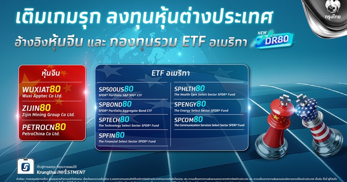 กรุงไทยเปิดตัวลงทุนหุ้นนอก DR (ชุดใหม่) “10 หลักทรัพย์” ขยายโอกาสลงทุนทั่วโลก อ้างอิงกองทุน ETF ชั้นนำและหุ้นเมกะเทรนด์ของจีน ดีเดย์ 11 พ.ย. นี้