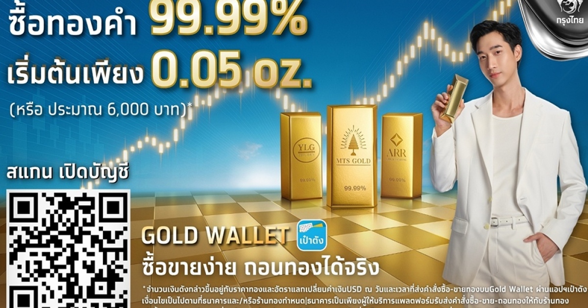 ธนาคารกรุงไทย เดินหน้ายกระดับประสบการณ์การลงทุนทองคำผ่าน Gold Wallet บนแอปพลิเคชัน “เป๋าตัง” ประกาศปรับขนาดขั้นต่ำการซื้อ-ขาย-ถอนทองคำบริสุทธิ์ 99.99% จาก 0.1 ออนซ์ เหลือเพียง 0.05 ออนซ์ มีผลวันที่ 7 พฤศจิกายน 2568 เพื่อเปิดโอกาสให้นักลงทุนรายย่อยเข้าถึงสินทรัพย์ปลอดภัยได้ง่ายขึ้น ท่ามกลางภาวะเศรษฐกิจโลกผันผวน ตอกย้ำบทบาทผู้นำด้านนวัตกรรมการลงทุนของไทย พัฒนาเครื่องมือการลงทุนให้ทันสมัย เข้าถึงง่าย ตอบโจทย์ผู้ลงทุนยุคใหม่
